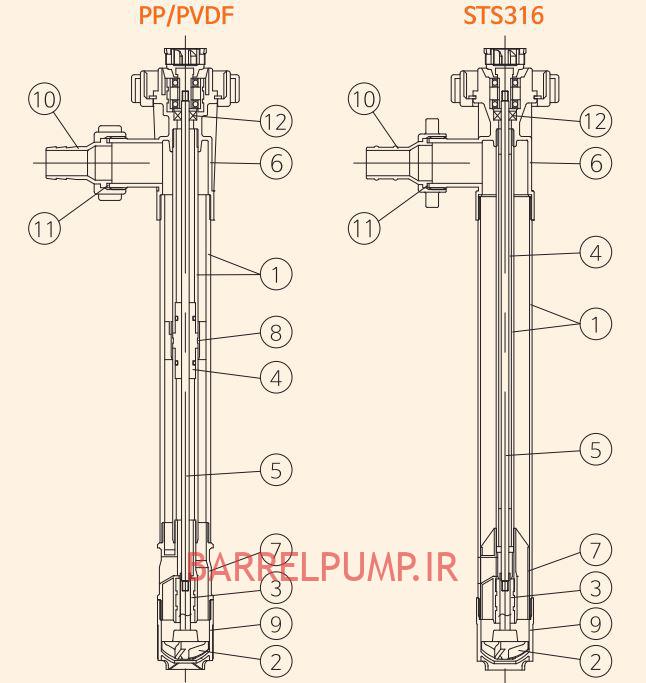 پمپ بشکه کش ضد اسید PVDF